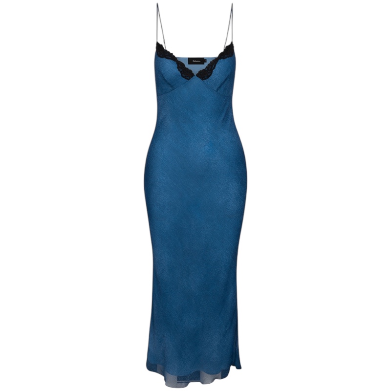 Двухслойное платье Karlie цвета индиго с принтом, отделанное кружевом на груди и длиной до щиколоток, станет вашим длинным платьем сезона. Классический вариант с принтом придает ему самый шикарный вид.