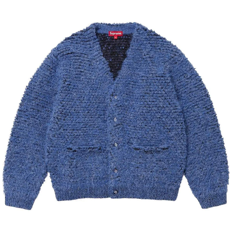 Синий шерстяной кардиган крупной вязки FW24