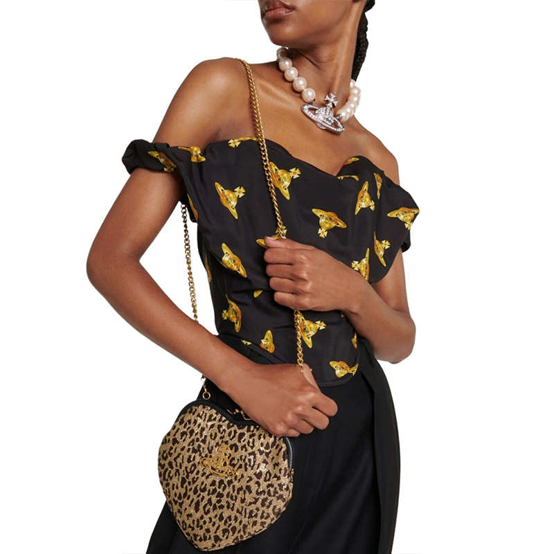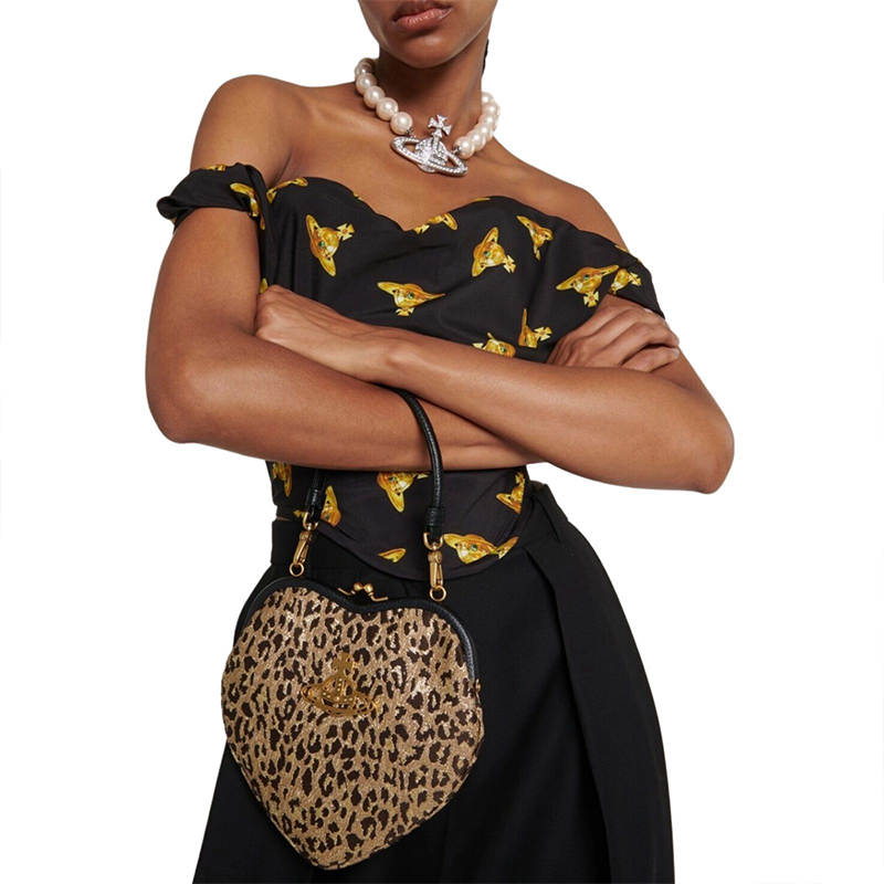 Сумка через плечо Vivienne Westwood Belle Heart Frame Purse в виде сердца леопард