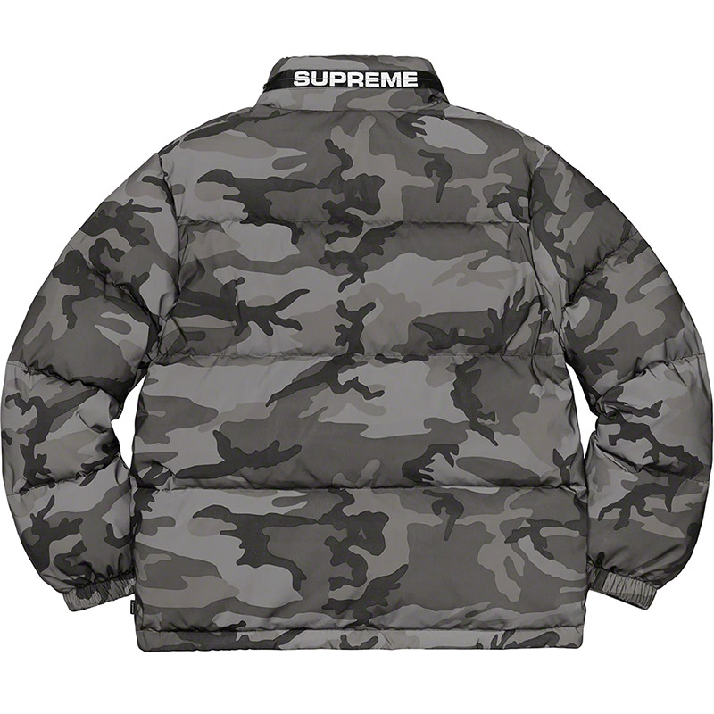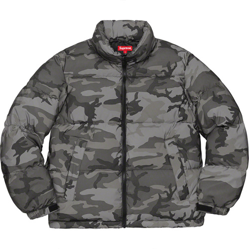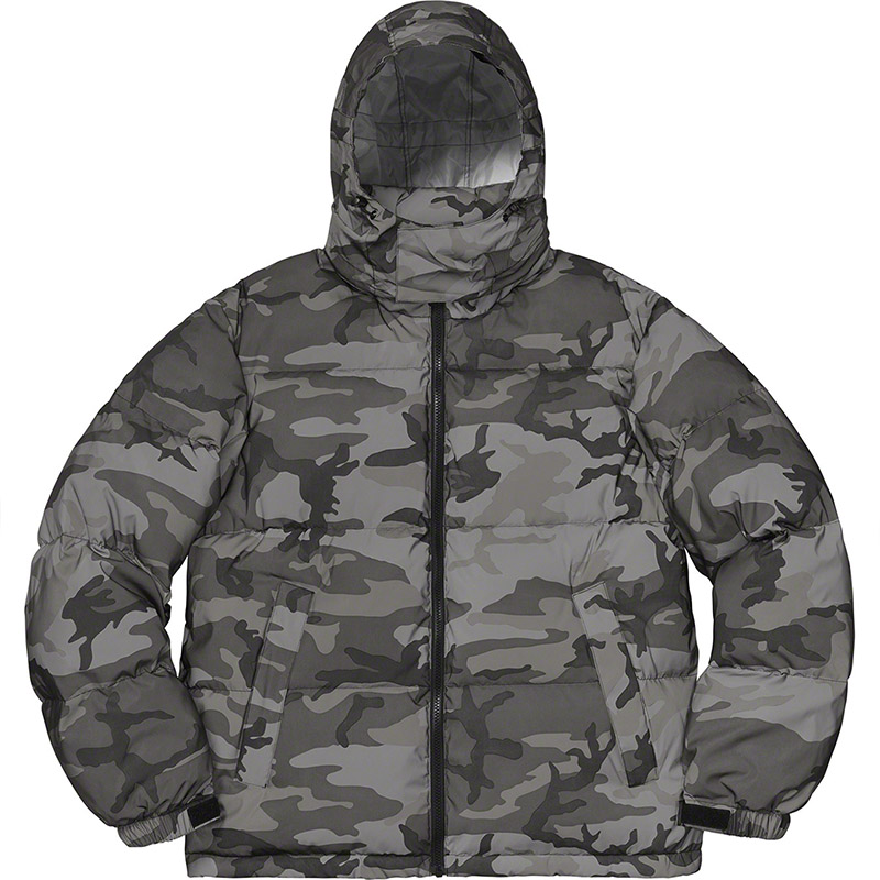 Светоотражающая камуфляжная куртка-пуховик со съёмным капюшоном серая Reflective Camo Down Jacket FW18