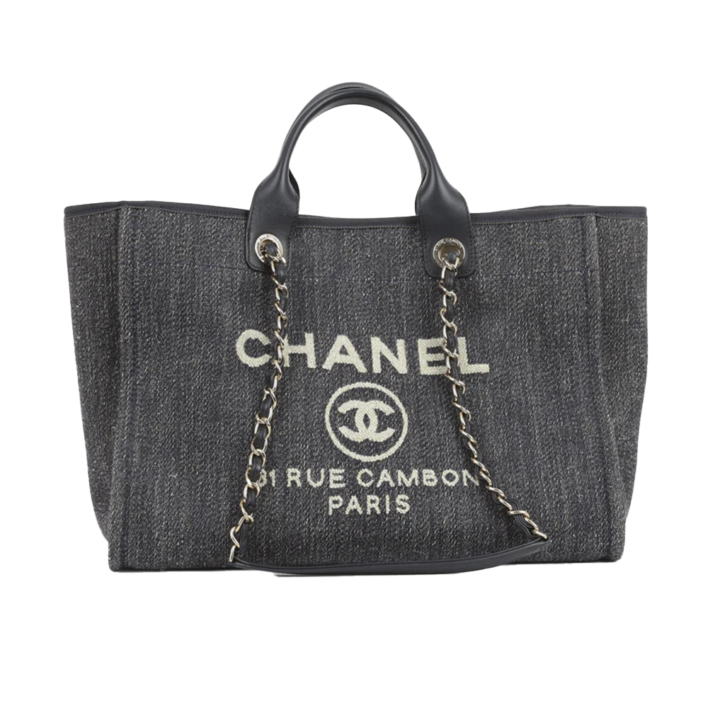 Темно-синяя джинсовая сумка-тоут CHANEL Deauville среднего размера