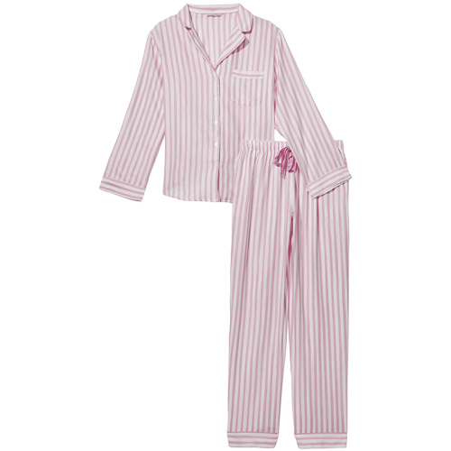 Женская розовая фланелевая пижама в полоску