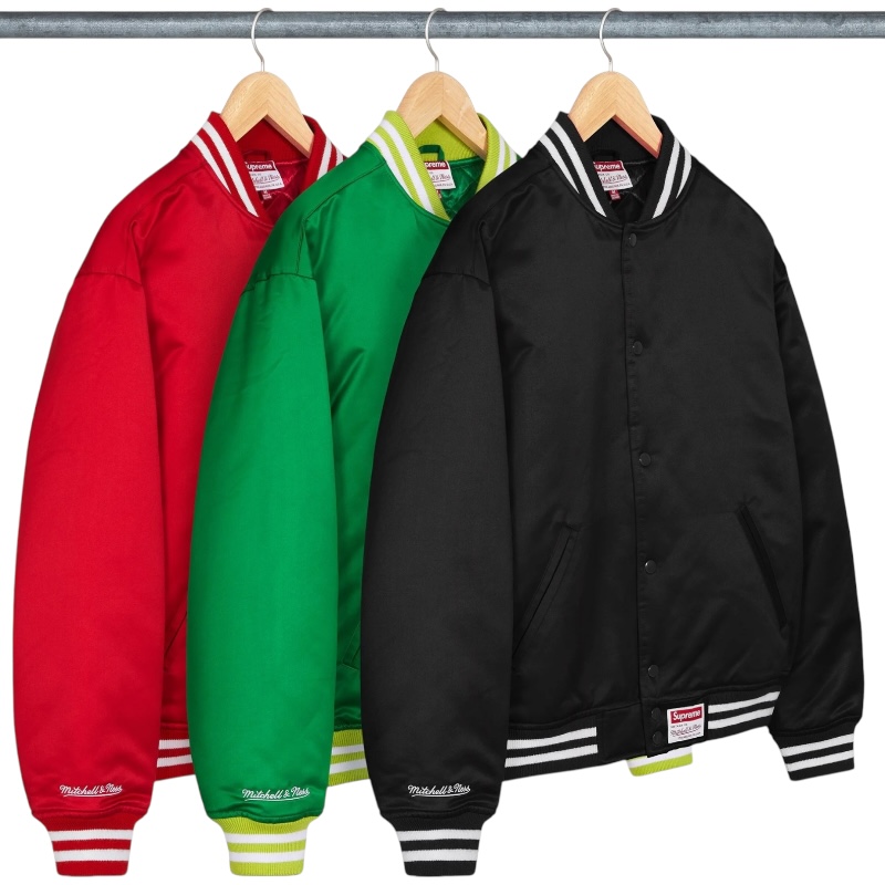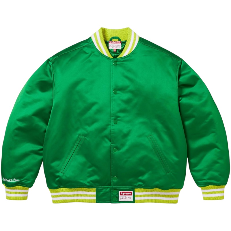 Зеленый атласный университетский бомбер Supreme/Mitchell & Ness FW24