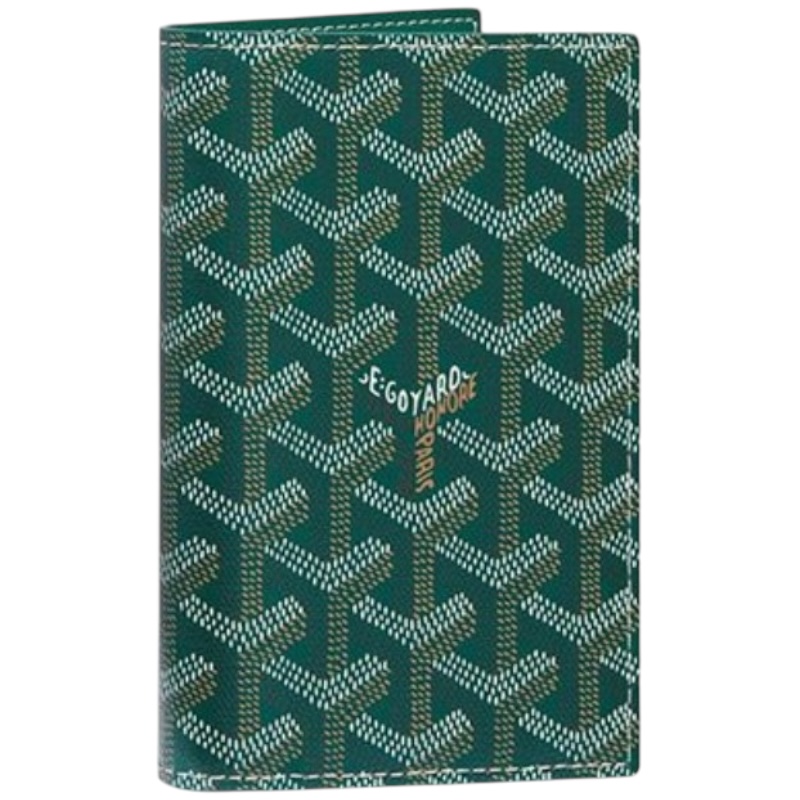 Зеленая обложка для паспорта Grenelle от бренда Goyard идеальна для путешествий. Она не только защищает паспорт, но и имеет разделы для карточек и бумаг.