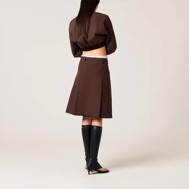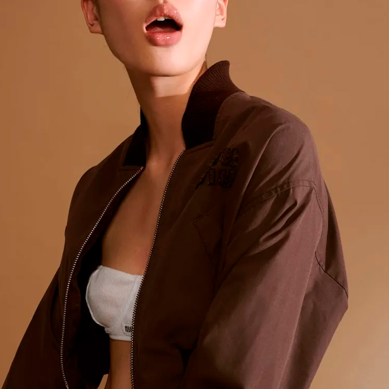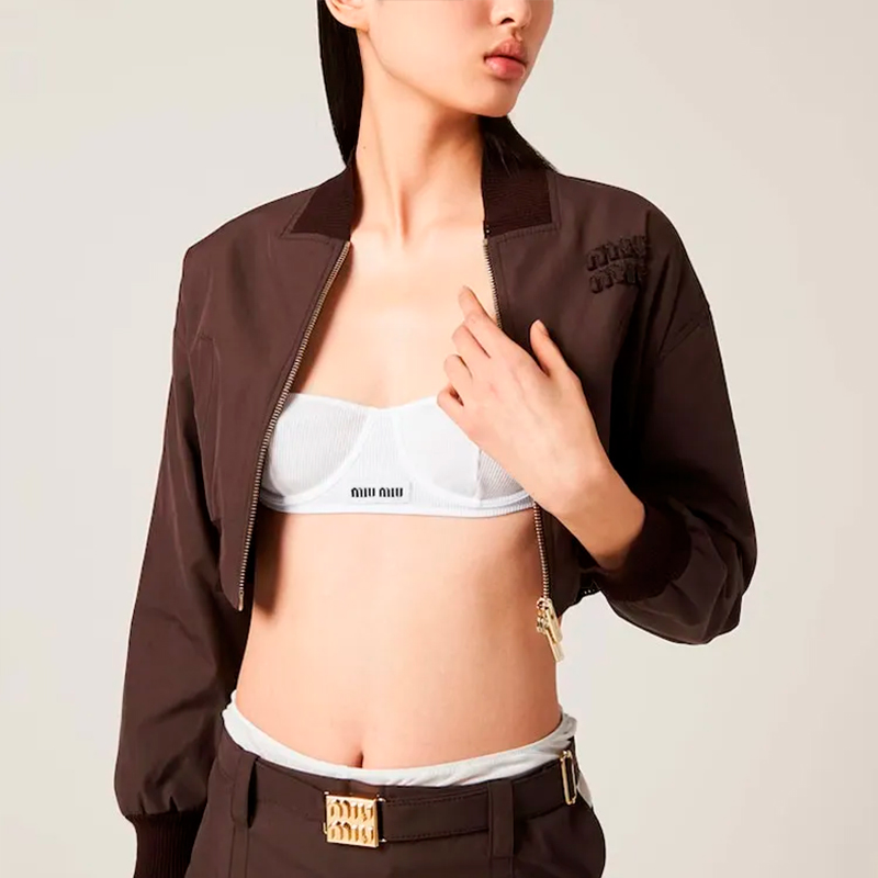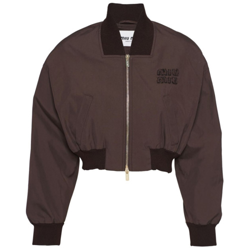 Женский коричневый укороченный бомбер из плотной ткани